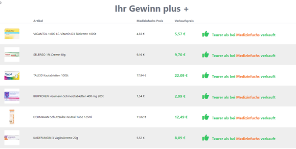 Doch damit noch nicht genug. Dass “billig” nicht immer das Rennen um die Gunst der Kunden macht, zeigt der Produkt-Live-Ticker von Mauve. Er belegt eindrucksvoll, dass im Online-Apothekenhandel der Preis nicht unbedingt die entscheidende Rolle spielt, sondern ganz offensichtlich noch andere Kriterien wie Schnelligkeit/Botendienst und Lieferfähigkeit für den Kauf ausschlaggebend sind. Als Maß der Dinge in Sachen niedriger Preis dient dabei Medizinfuchs. Der Liveticker zeigt, zu welchem Preis über dem Medizinfuchs-Preis Kunden Medikamente im Internet kaufen. Die Beispiele sollten Apotheken Mut machen, Marketing in eigener Sache nicht über den Preis zu betreiben.
