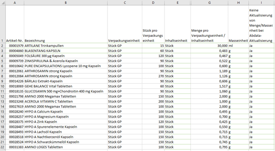 Artikelnummer = ArtikelNr / PZN (achten Sie darauf, dass die Artikelnummer 8-stellig ist)