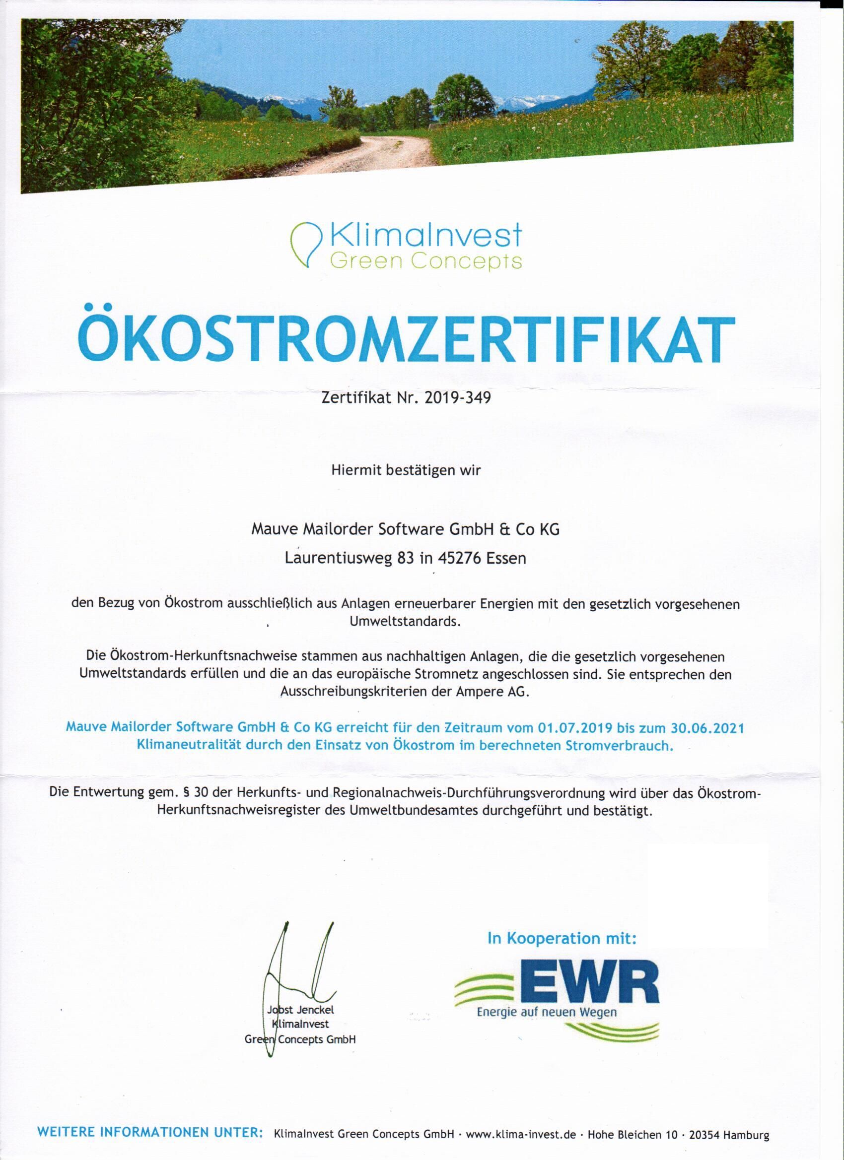 Jetzt ist es amtlich. Mauve ist nicht nur umweltbewusst und innovativ, sondern auch klimaneutral. Das bestätigte die Klimainvest Green Concepts GmbH mit der Verleihung des Ökostrom-Zertifikats. Durch den Einsatz von Ökostrom, der ausschließlich aus Anlagen erneuerbarer Energien mit den gesetzich vorgeschriebenen Umweltstandadrs stammt, hat das Unternehmen Klimaneutralität erreicht. Zudem nimmt Mauve ab dem 08.07.2019 auch offiziell am Clean - Advantage-Programm teil und schützt mit jedem gefahrenen Meter aktiv unseren Planeten!